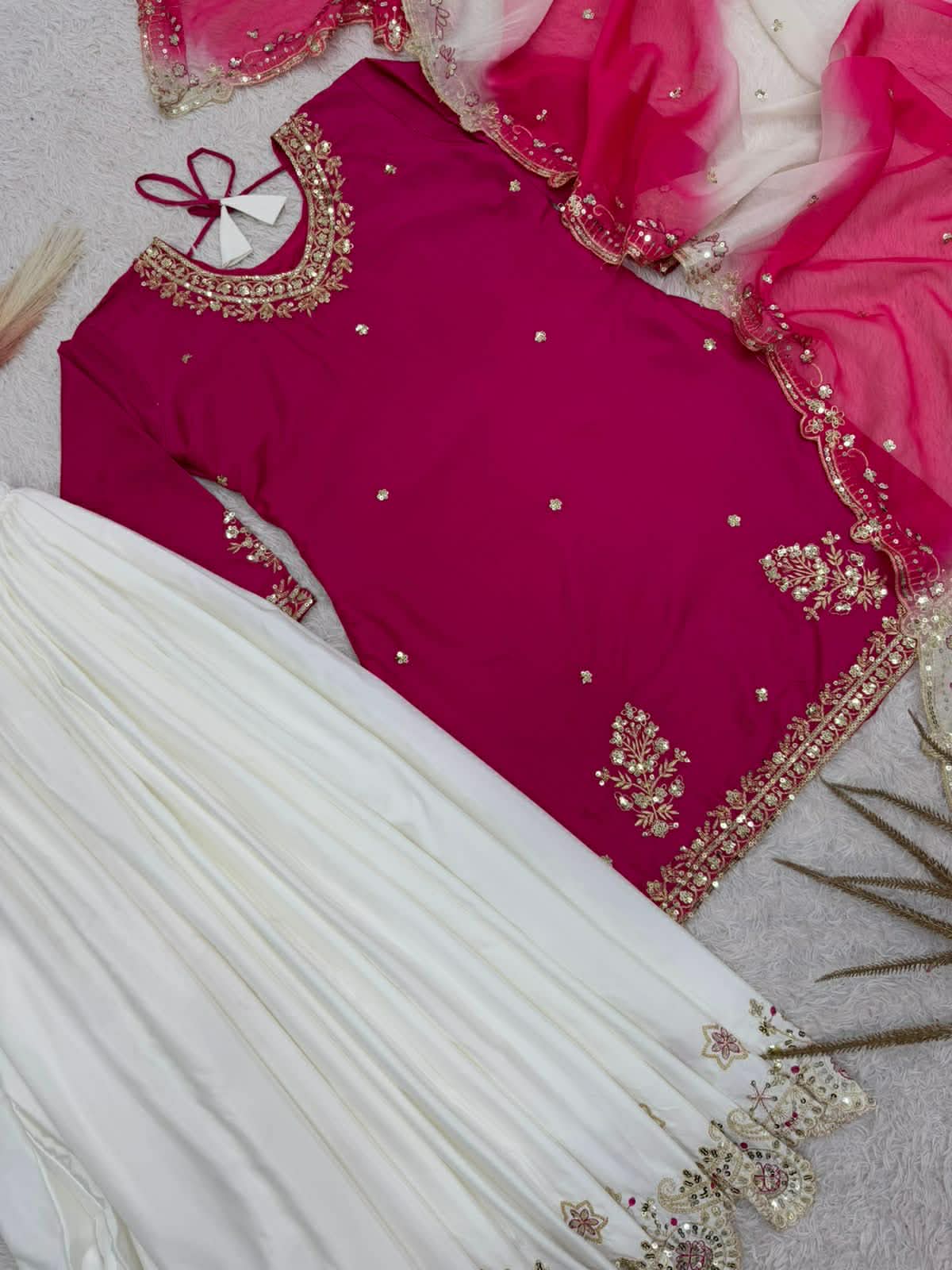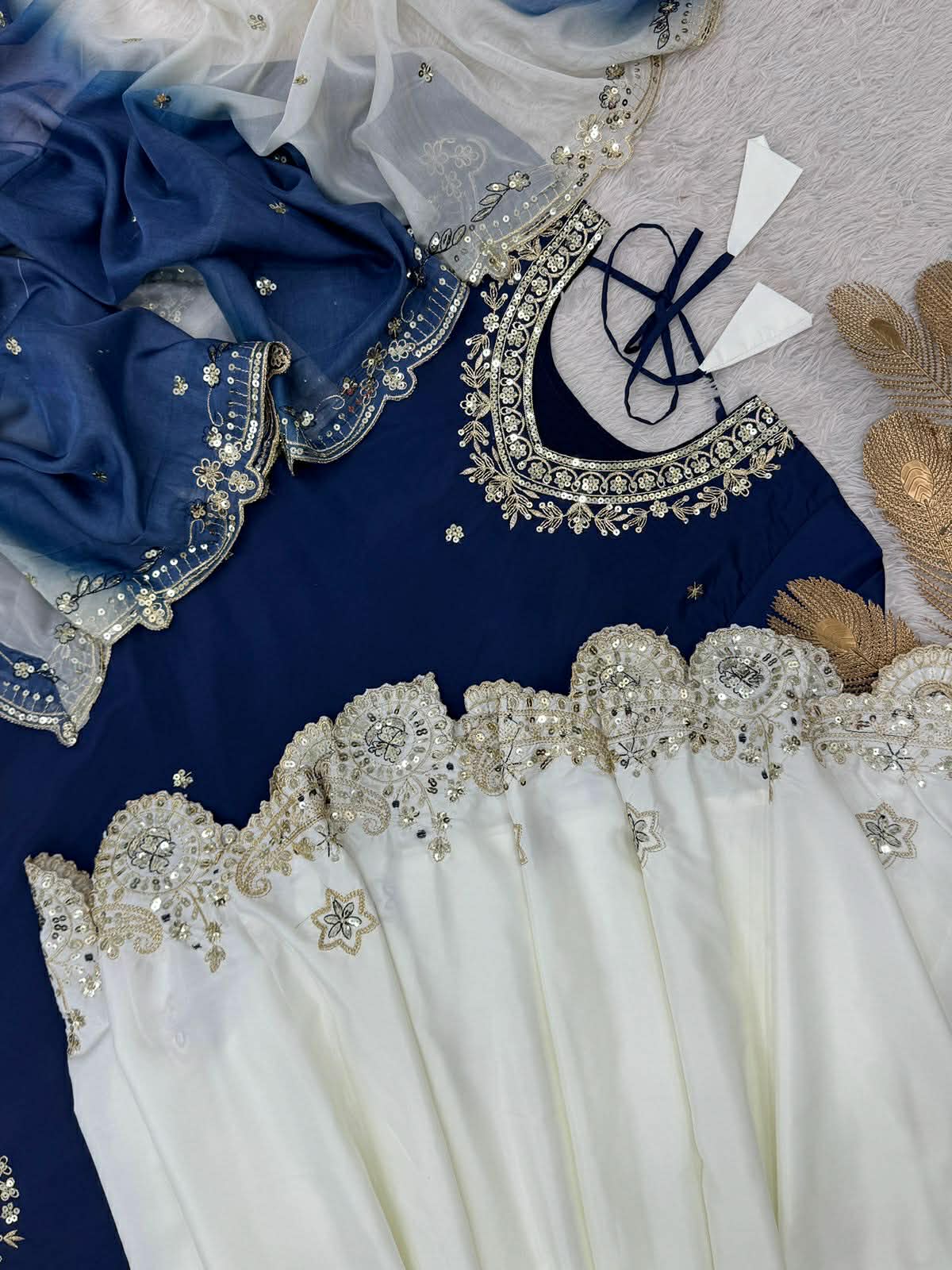 Top fabric – pure natural french crape with beautiful 5mm embroidery sequence work