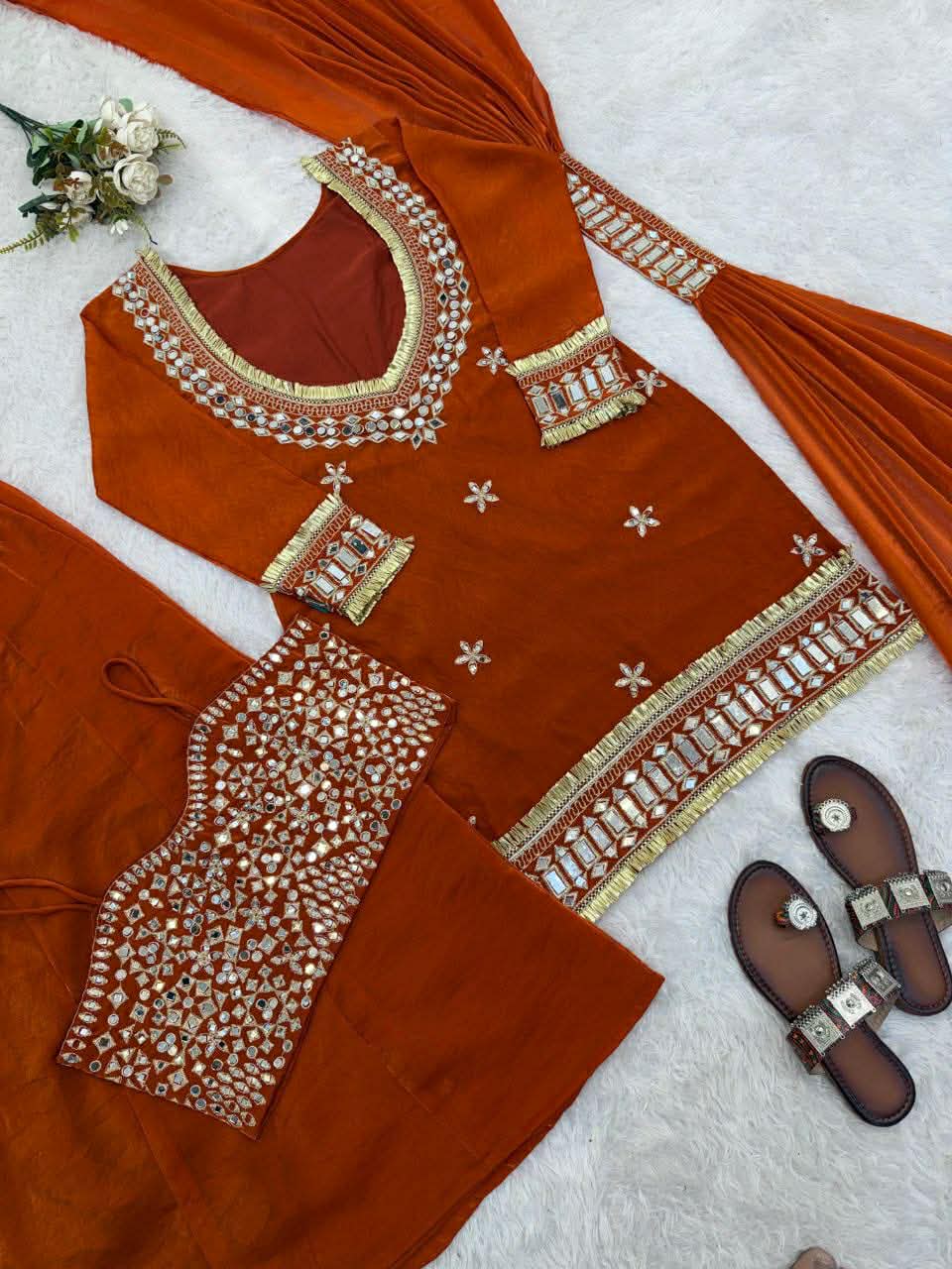 Dupatta fabric – fendy silk with mirror work