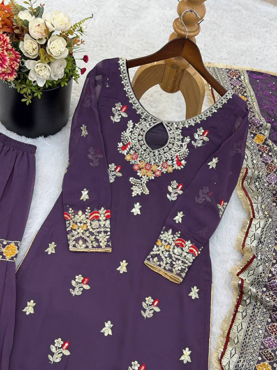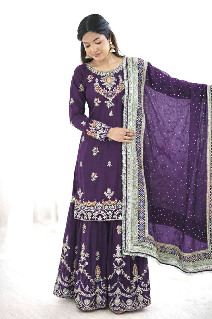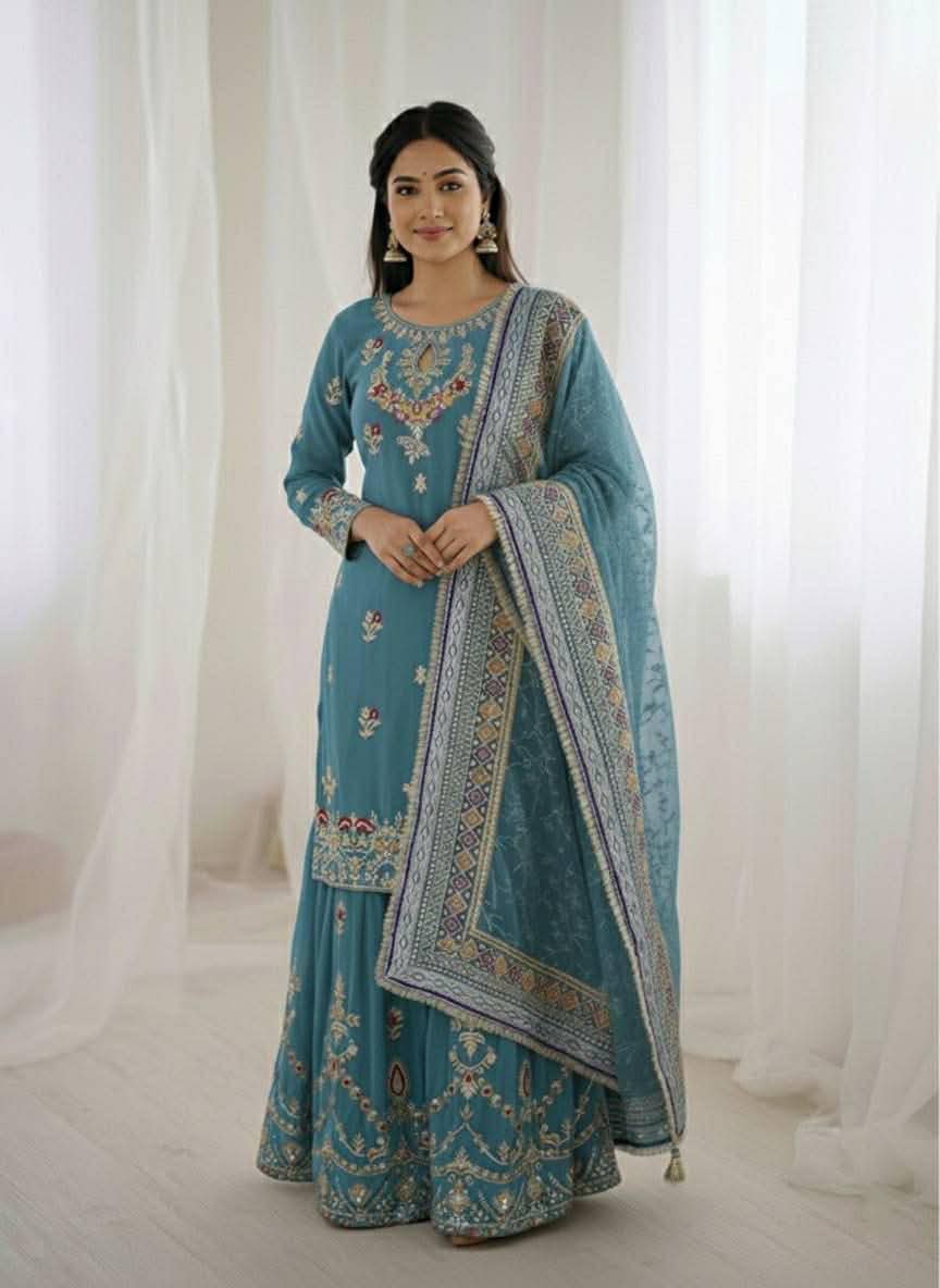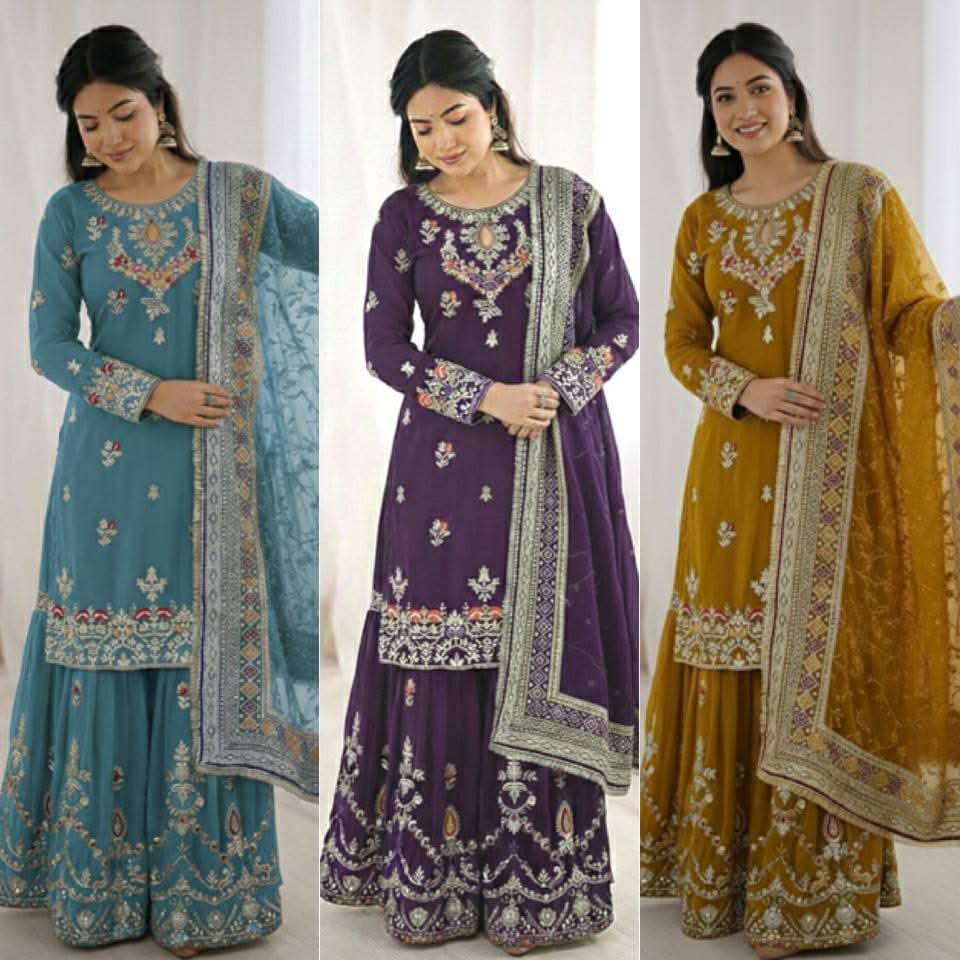 Sharara fabrics – heavy faux georgette with sequence embroidery work (fully stitched)