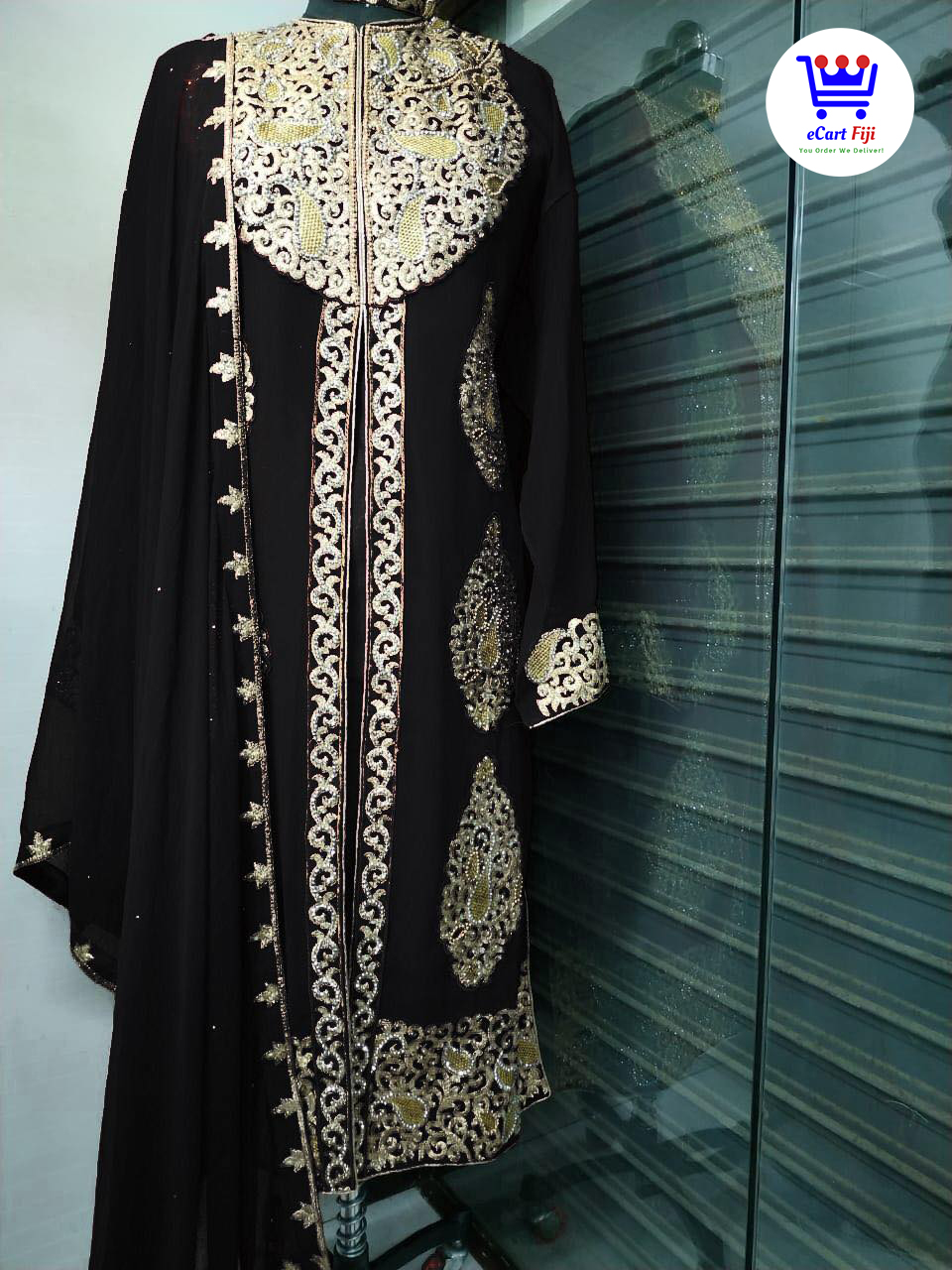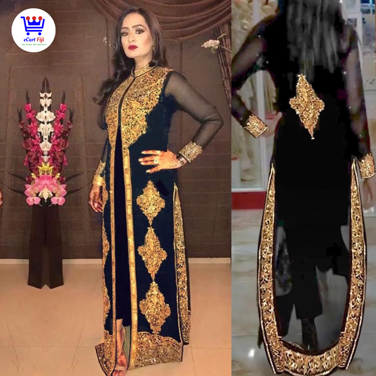 Top – Heavy georgette with embroidery and stone work (front and back)