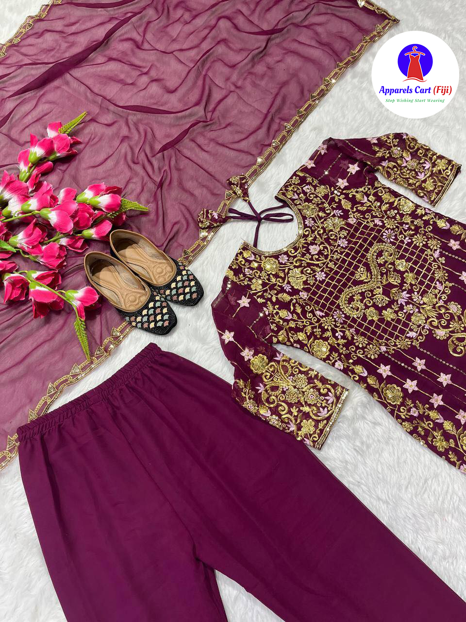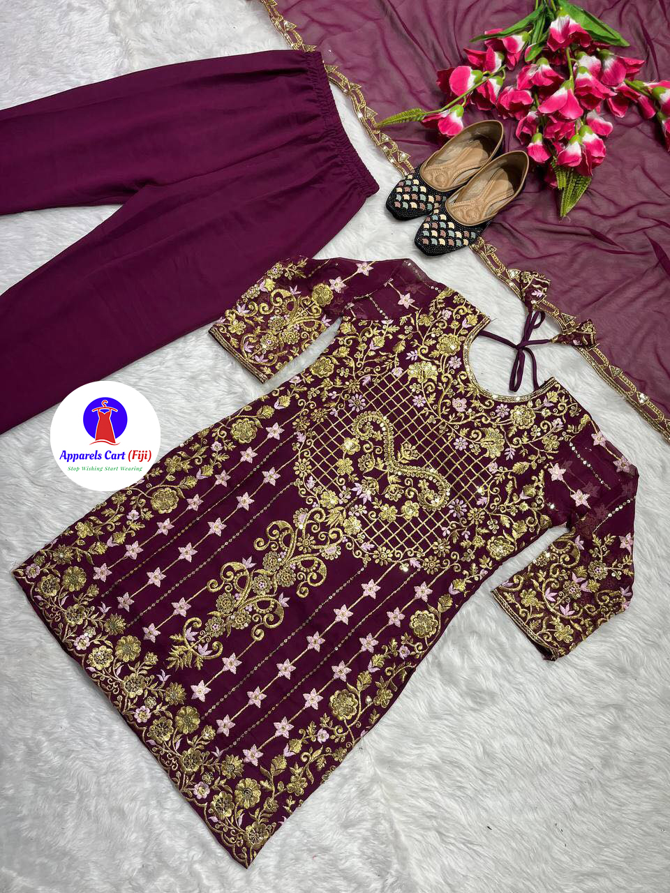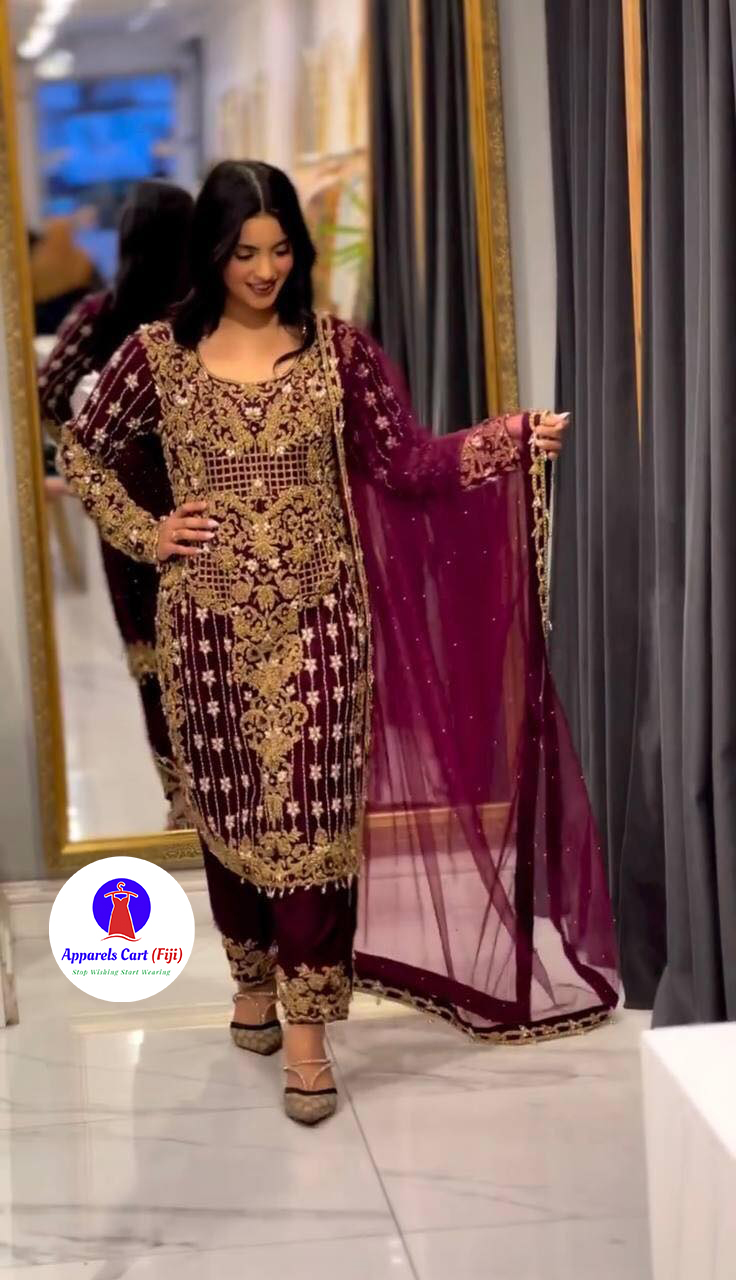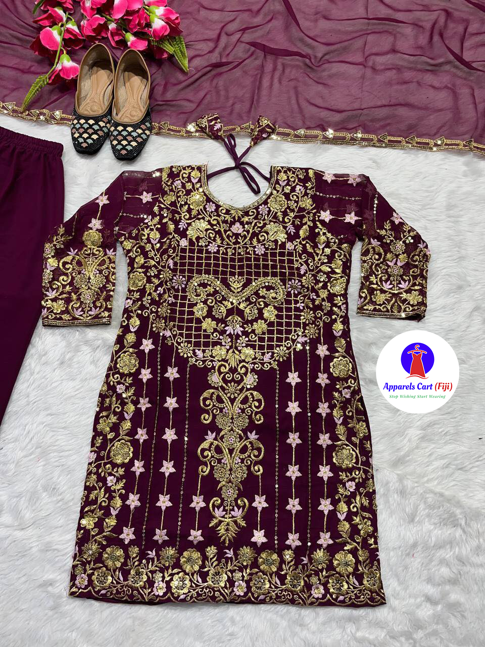 Top fabric – heavy faux georgette fabric with heavy embroidery 5mm sequence work (fully sleeveās)