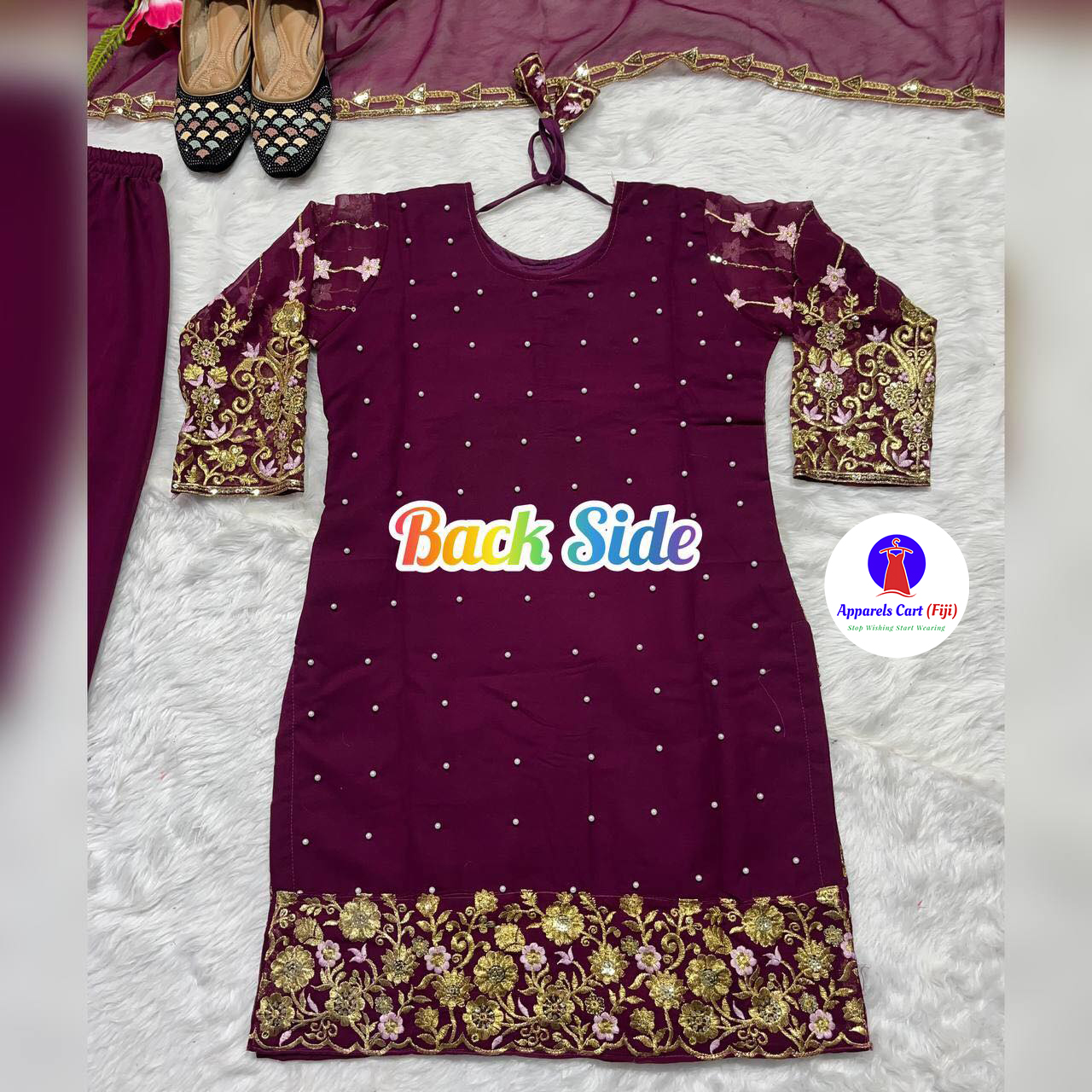 Pant fabric – heavy faux georgette with heavy embroidery 5mm sequence work
