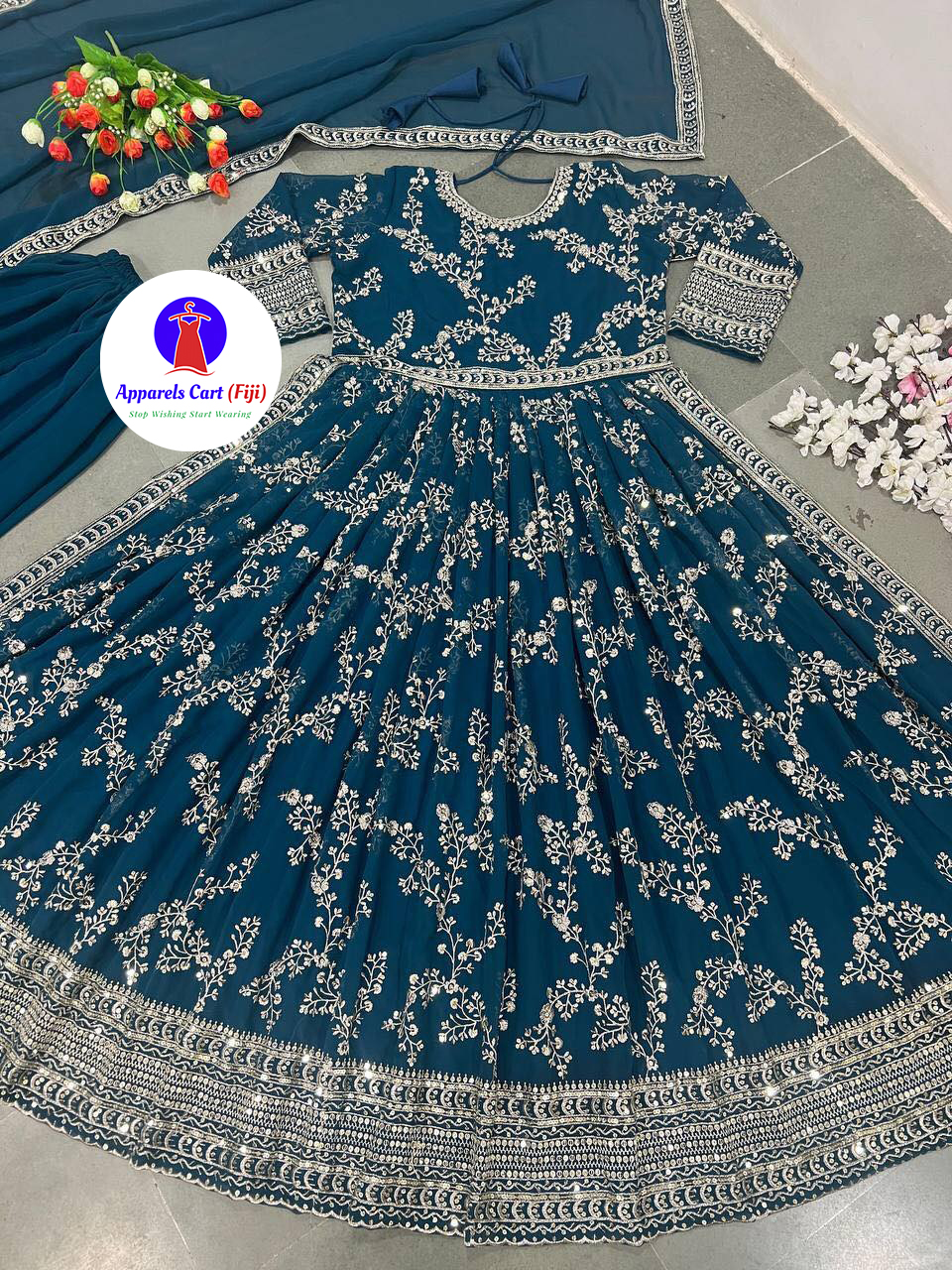 Dupatta fabric – heavy faux georgette with embroidery sequence work (2.2 meters)