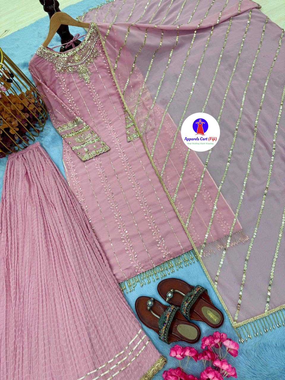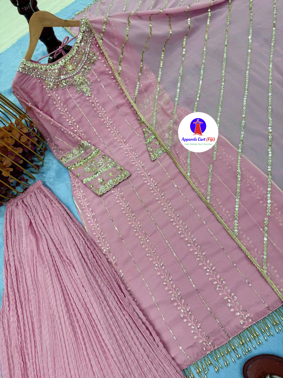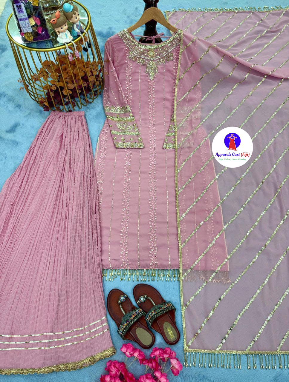 Work – heavy embroidery 3&5 mm sequence work with rivet moti work with fancy latkan border