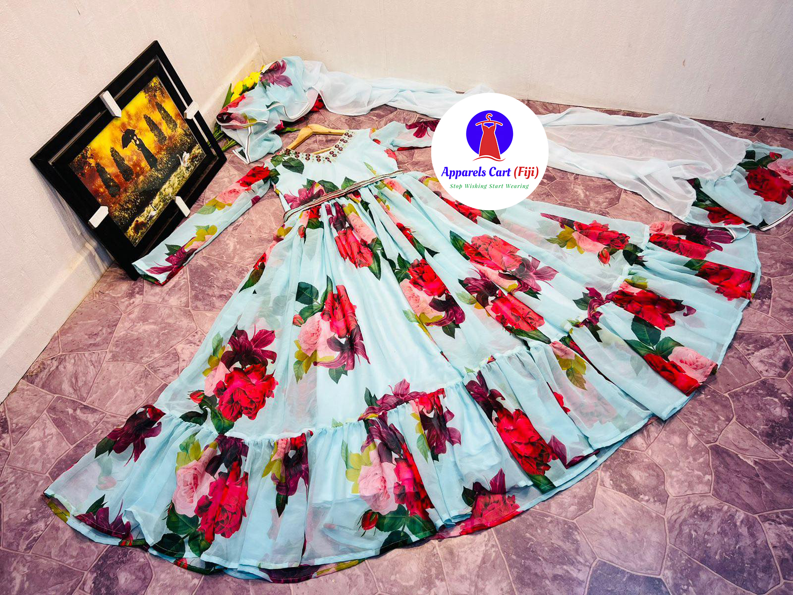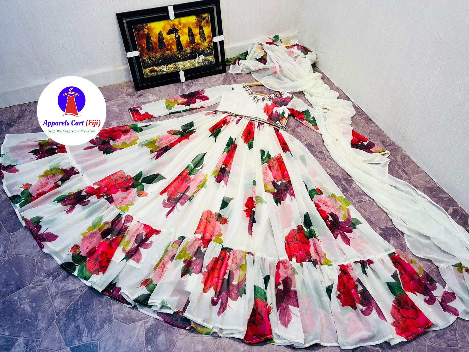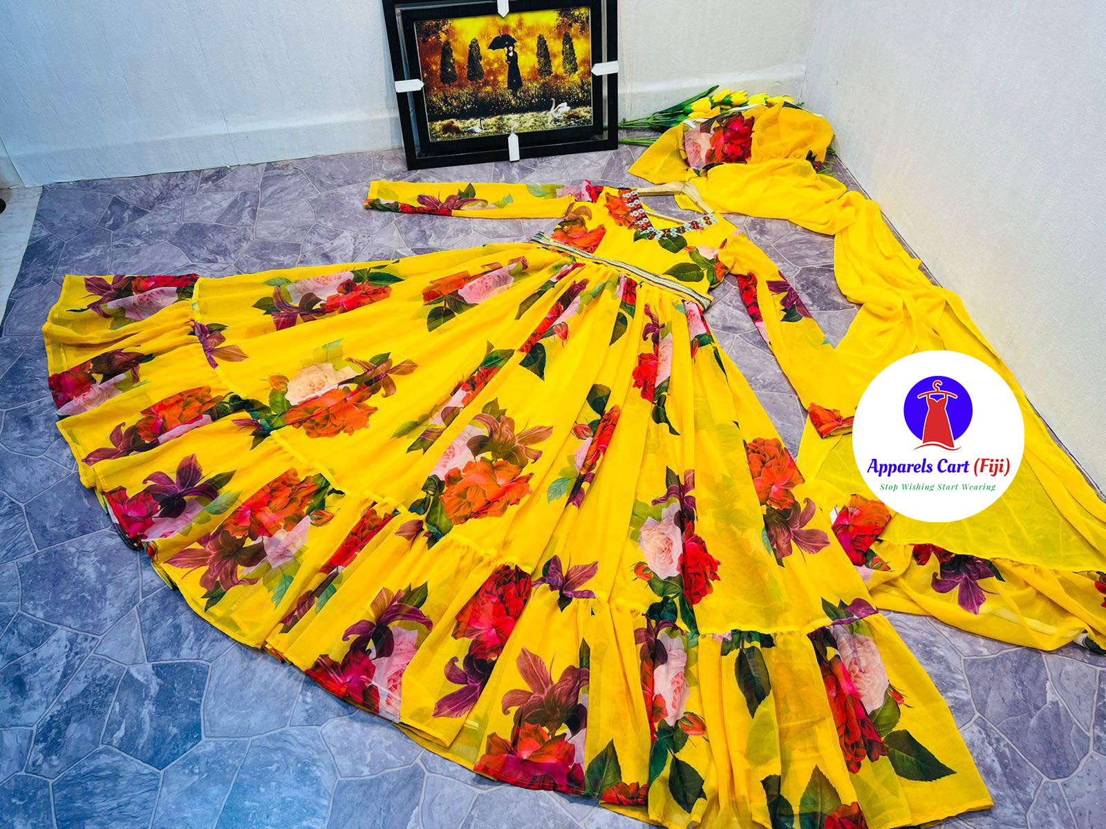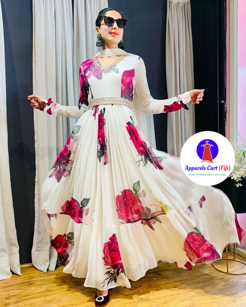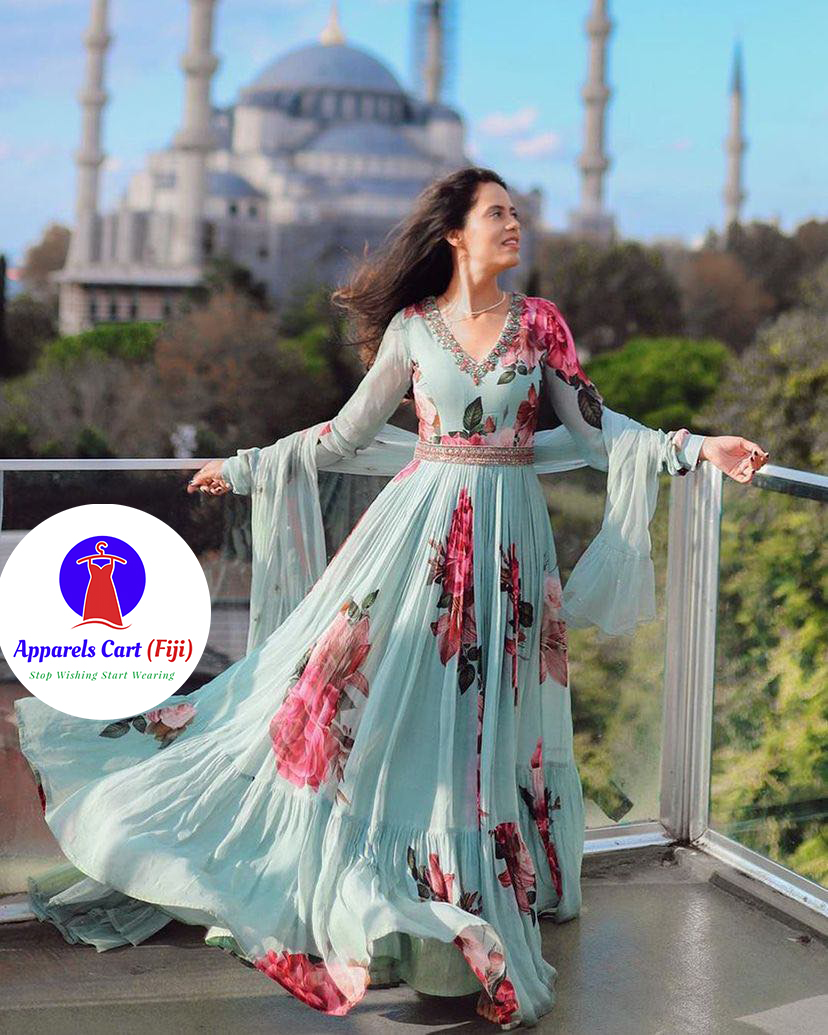 Dupatta fabric – Faux georgette with print and fully stitched