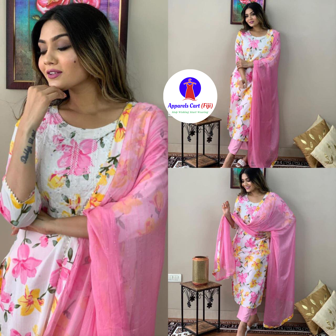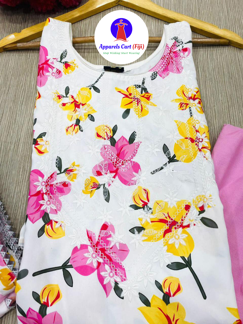 Kurti Fabric – printed rayon cotton with embroidery work on the neck