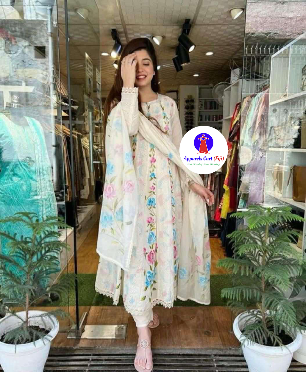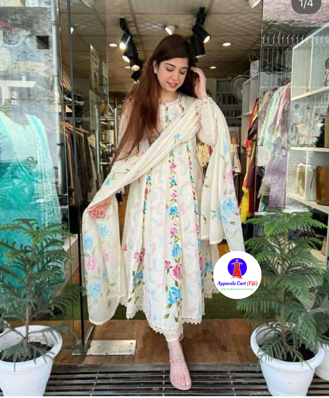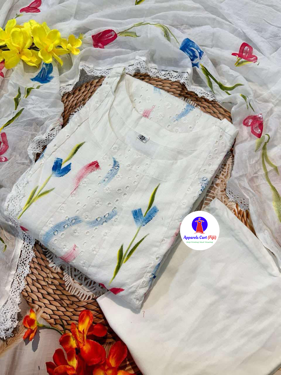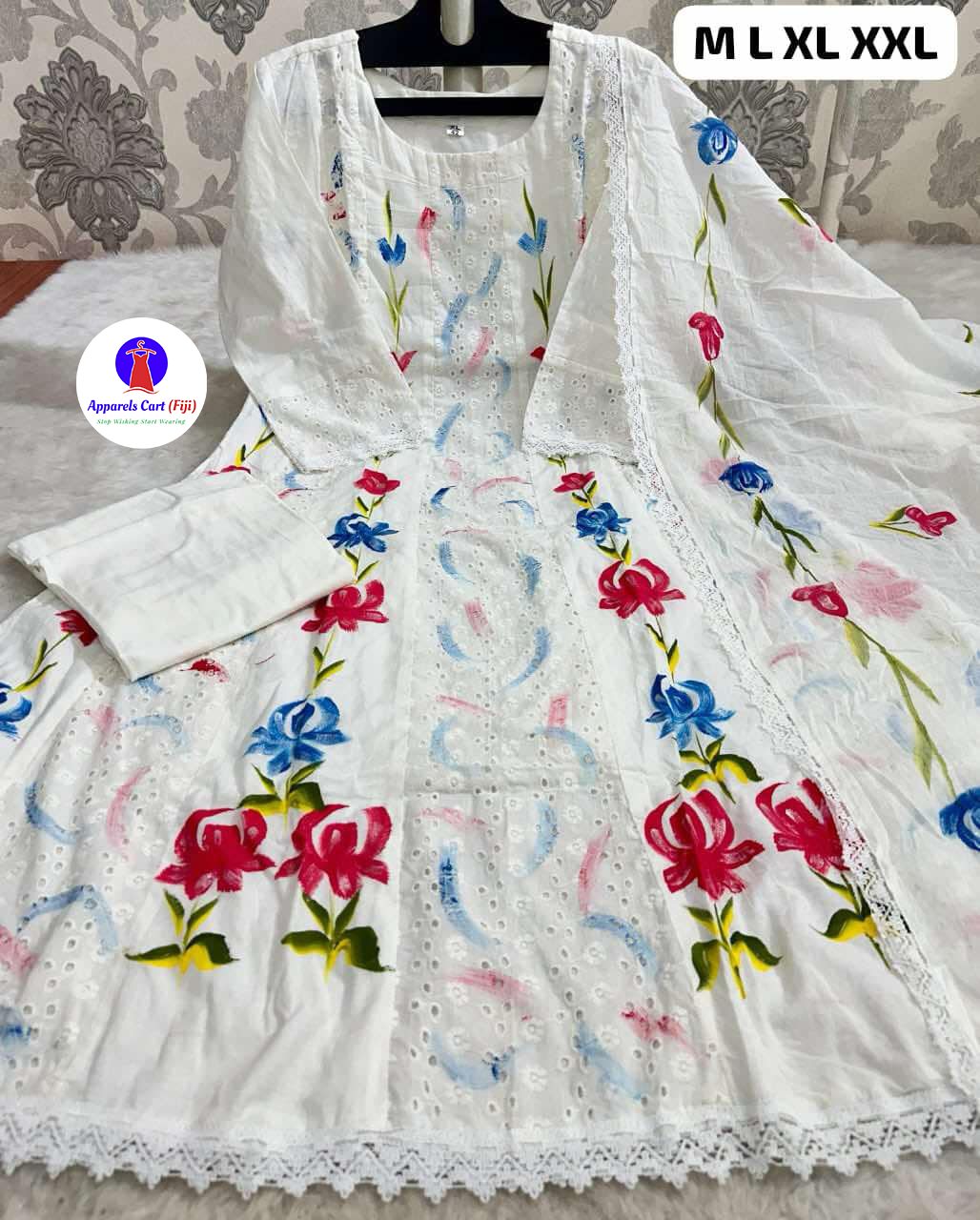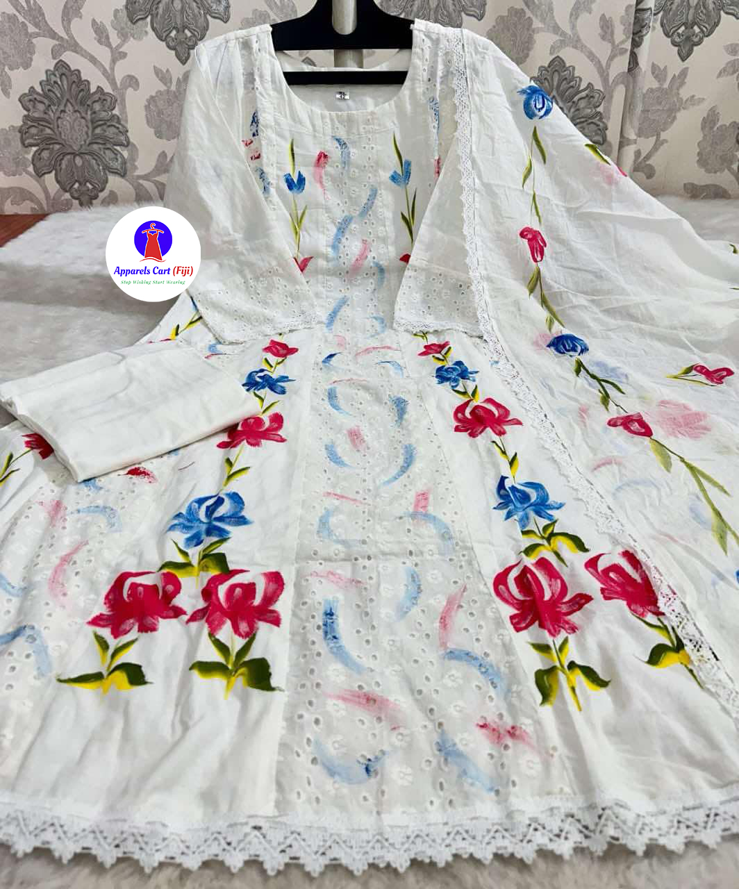 Fabric = heavy premium chikan shifli cotton anarkali fabric kurti with hand printed pant and mulmul dupatta