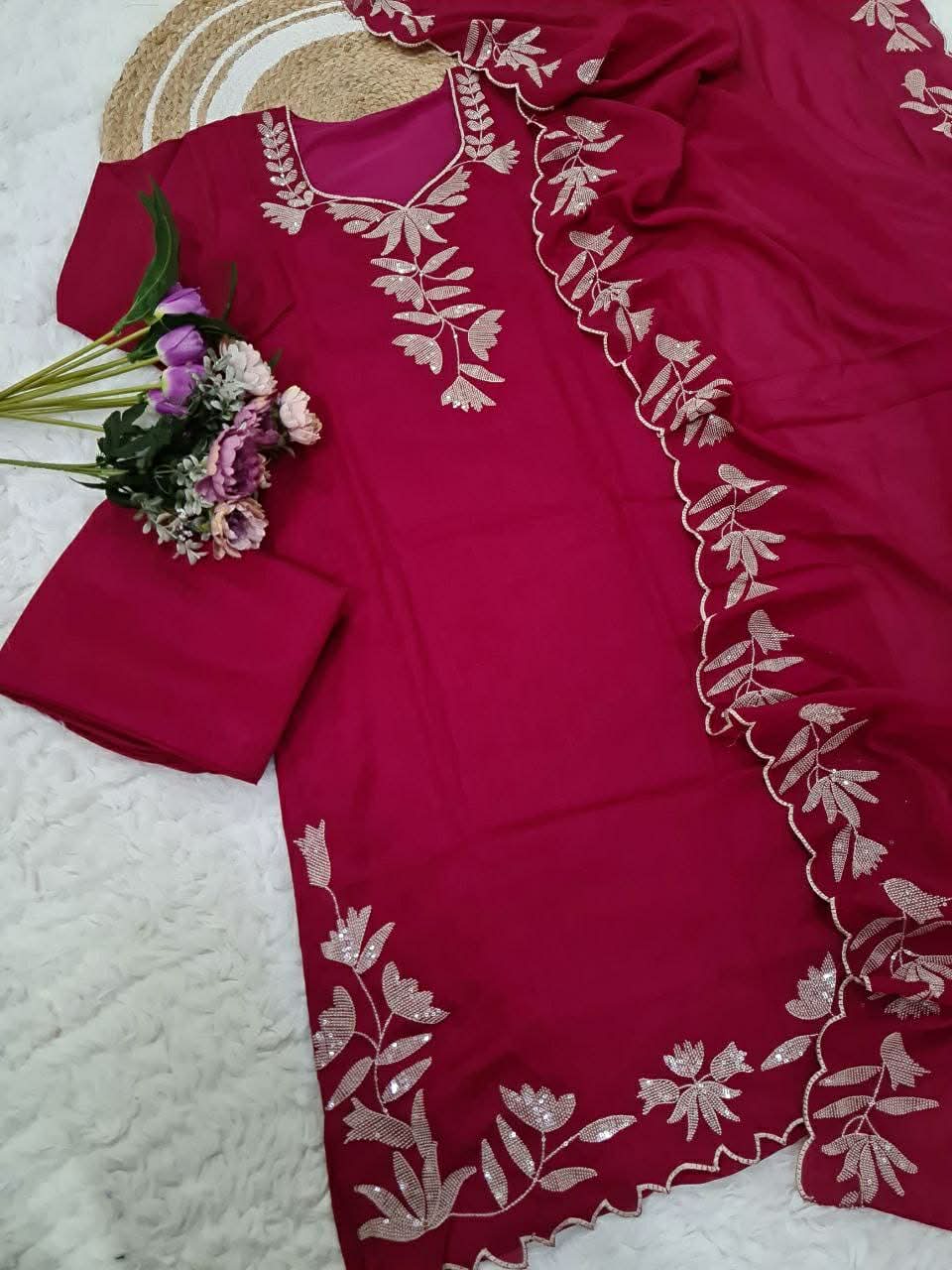 Kurti – pure vichitra silk with sequence embroidery work