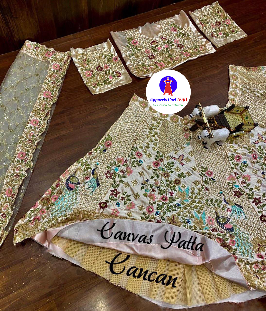 Lehenga work – Sequence embroidery work with cancan and canvas patta