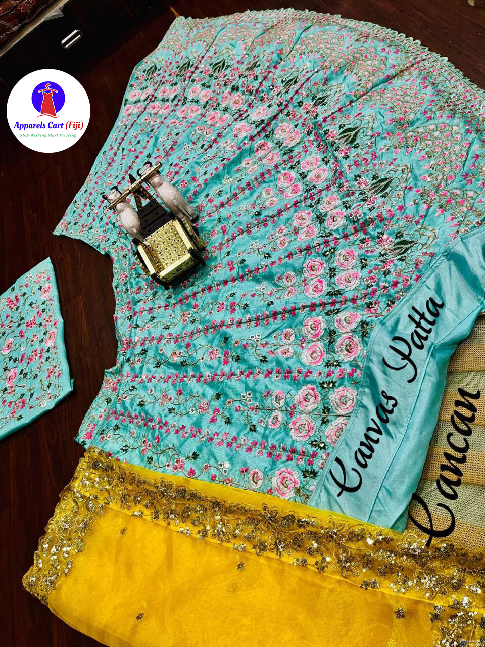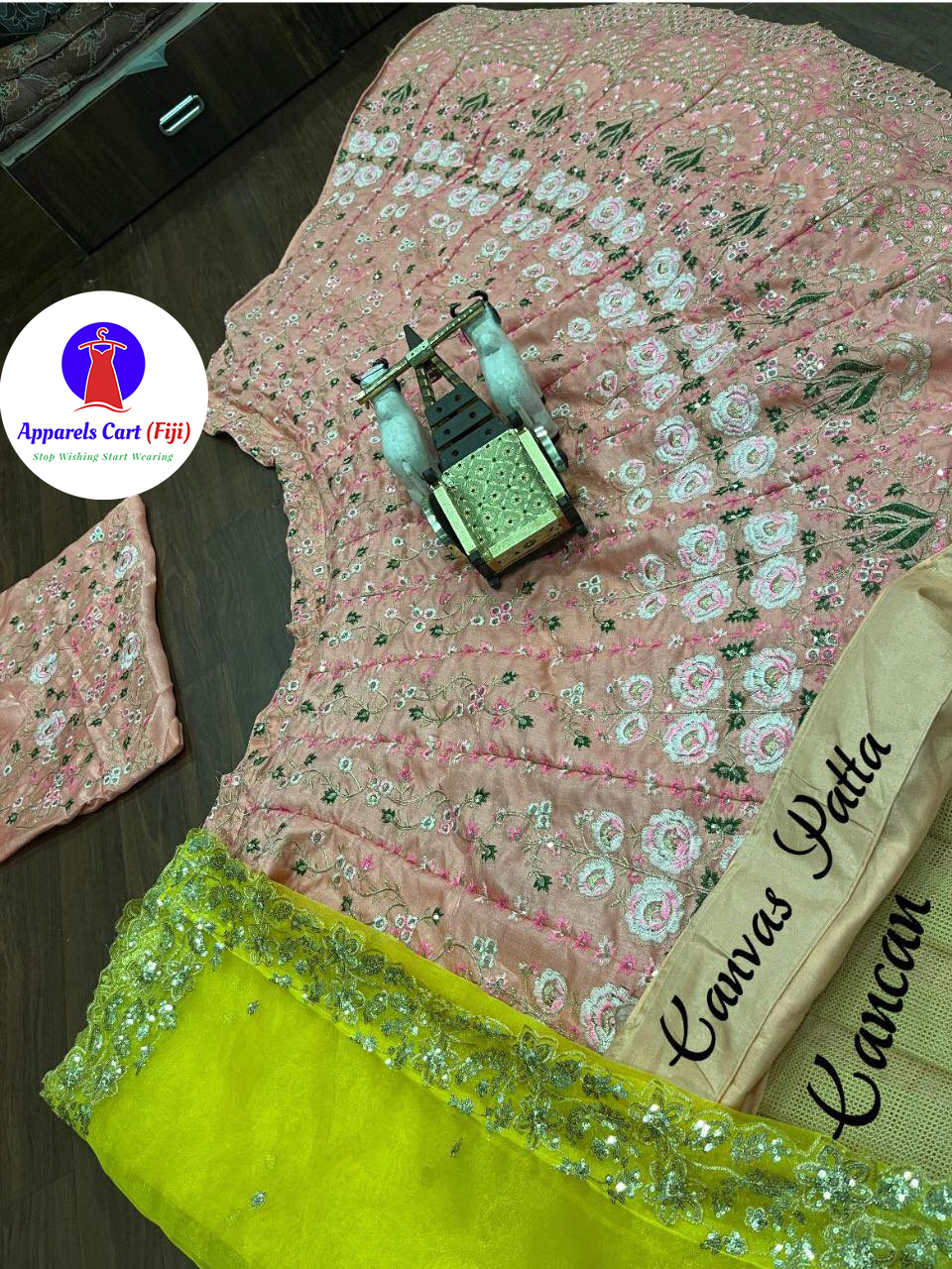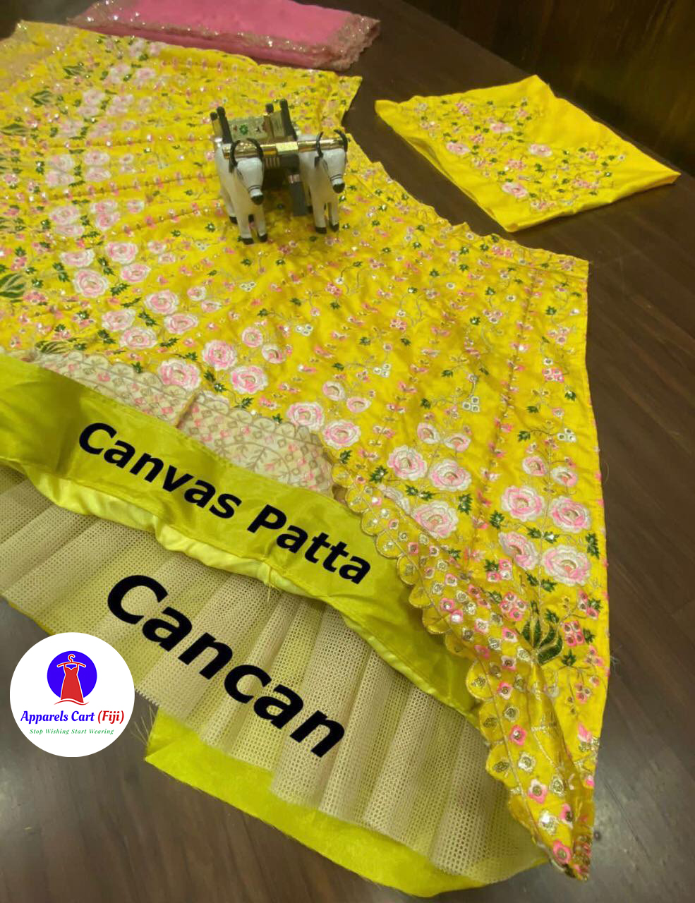 Lehenga work – sequence embroidered work with cancan & canvas patta
