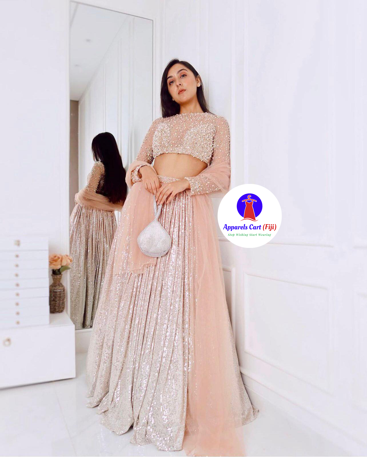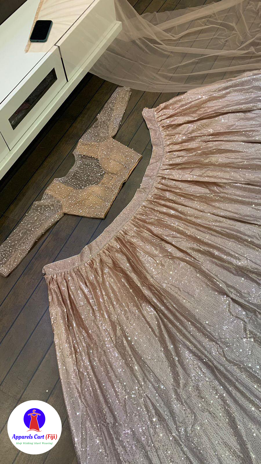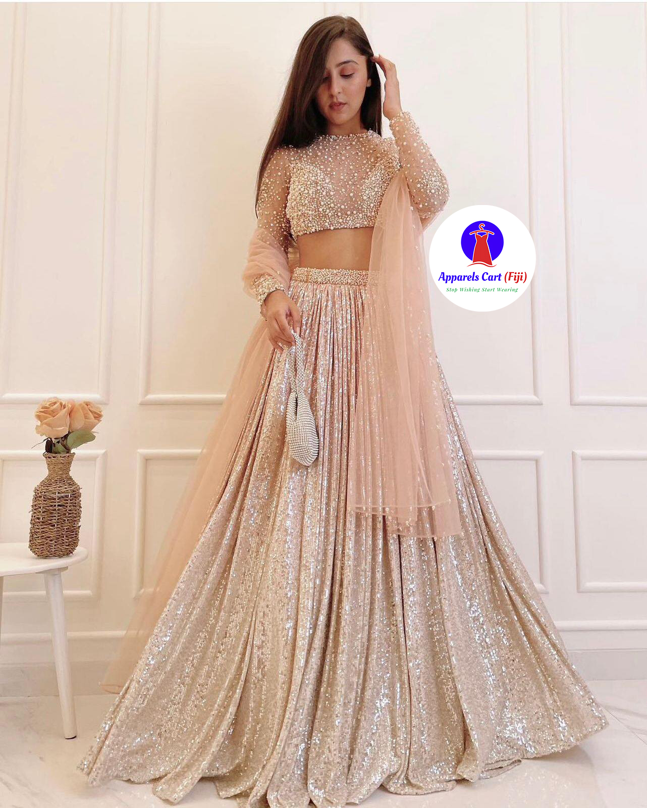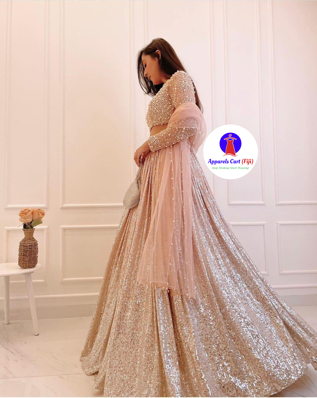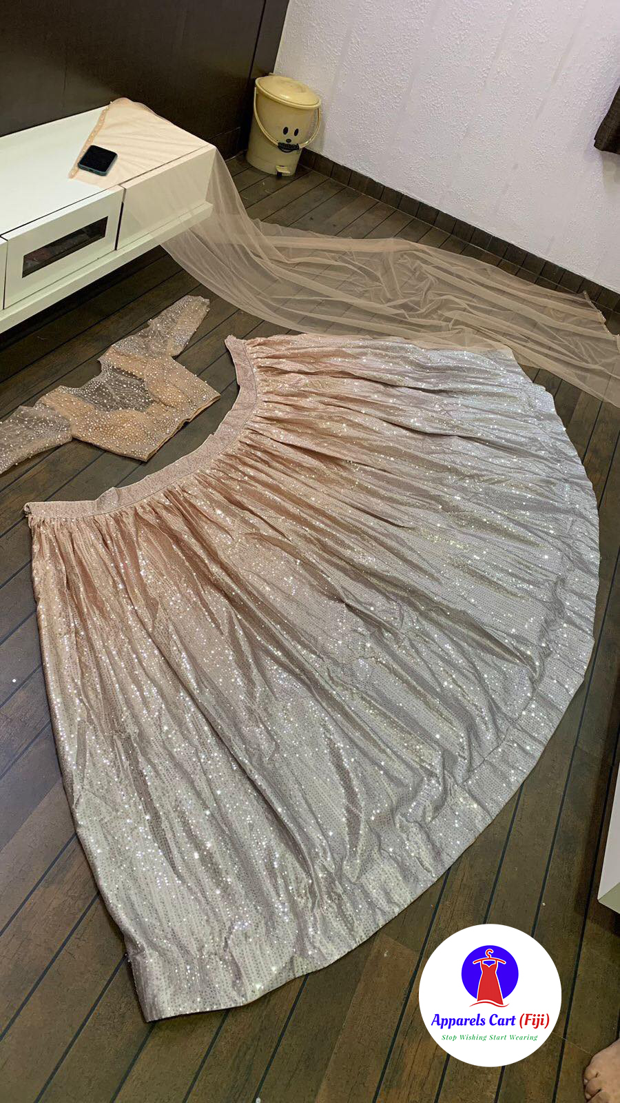 Satin silk padding lehnga with sequence work
