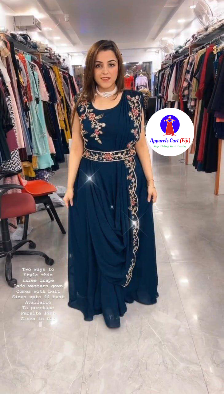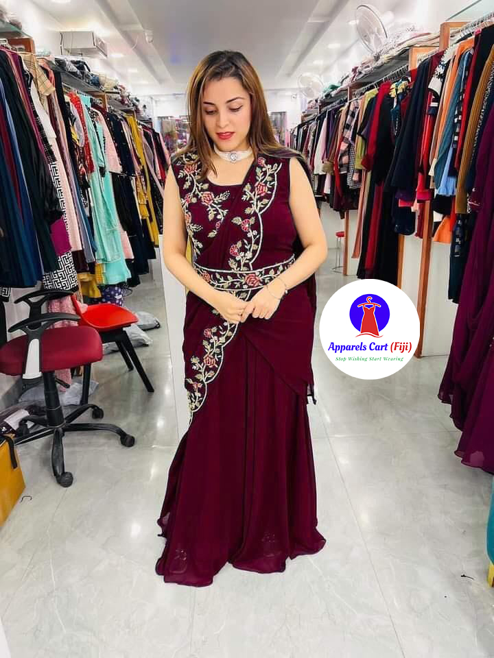 Fabric – heavy faux georgette with attached pad, extra sleeve fabric and 8 meter flair