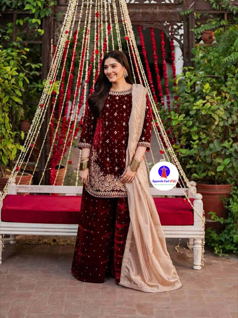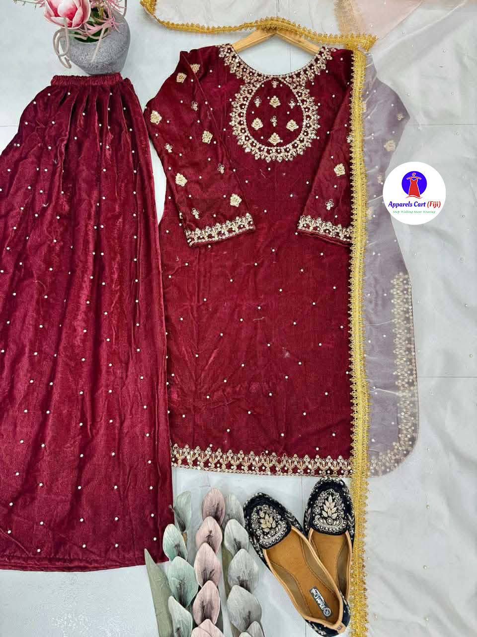 Work- heavy embroidery codding sequence work with rivet moti both side work